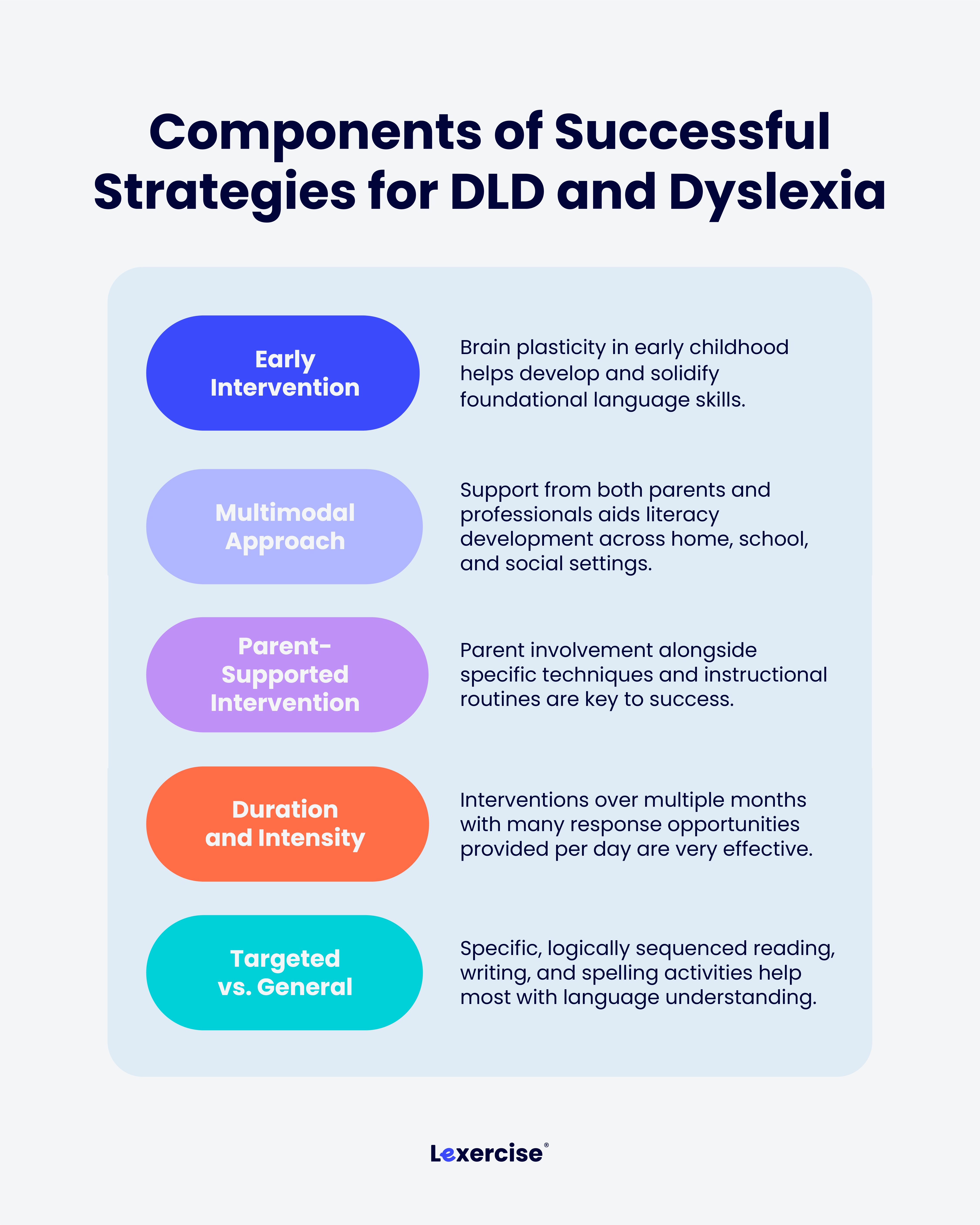 Struggling readers often have a combination of DLD and dyslexia. Effective intervention requires the use of tools that are targeted to the individual's strengths and weaknesses.