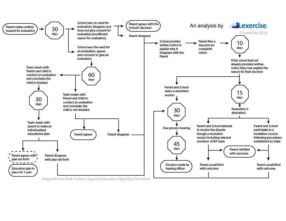 public schools struggle to adequately identify and support dyslexic students. Since publishing, we’ve heard valuable feedback from parents describing their own particular “horror stories” with trying to secure treatment and accommodations for their children by navigating public school bureaucracy.Professor Ruth Colker, one of the country's leading constitutional law and disability scholars, helped us construct the graphic below. This graphic illustrates the slow, bureaucratic (and often unsuccessful) process required to classify a child to receive a public school's tax-supported special education services and/or accommodations.